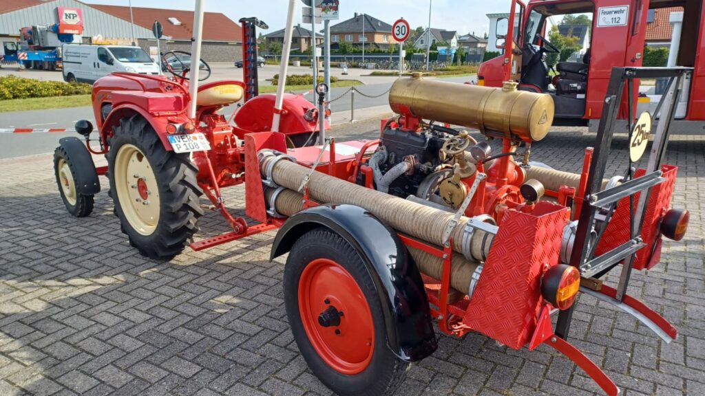 Ein besonderes Highlight war unsere KFZ-Ausstellung. Hier wurden alle Feuerwehrautos, welche jemals in Riede genutzt wurden, ausgestellt. Das Herzstück dieser Ausstellung stellt unsere erste Tragkraftspritze aus dem Jahr 1930 dar.