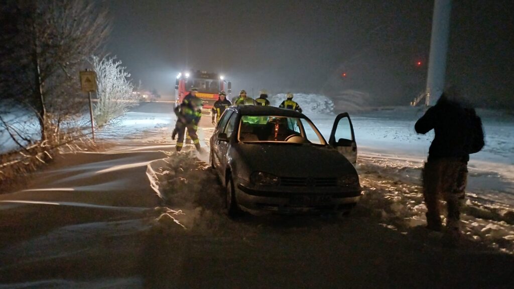 Dank der Unterstützung eines Feuerwehrkameraden mit seinem Trecker konnte der PKW schnell befreit werden, sodass alle Beteiligten rasch wieder ins Warme zurückkehren konnten.